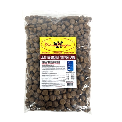 Budget Premium Lamb & Mobility is een licht verteerbare hondenvoeding voor volwassen honden van alle rassen. Door het gebruik van gedroogd lamsvlees en een uitgebalanceerde mix van granen, oliën en voedingsstoffen is deze voeding geschikt voor honden met spijsverterings- of mobiliteitsproblemen. Omega 3- en 6-vetzuren helpen bij het behouden van een gezonde huid en vacht, terwijl de geselecteerde ingrediënten bijdragen aan een goede weerstand, vertering en stofwisseling.