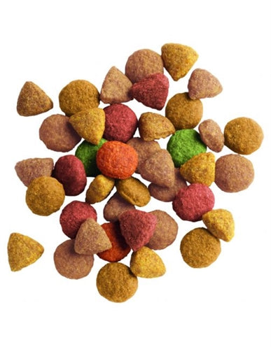 Samenstelling: granen, vlees en dierlijke bijproducten (kip 25%, kalkoen 4%), plantaardige eiwitextracten, oliën en vetten, plantaardige bijproducten, groenten, gist, mineralen