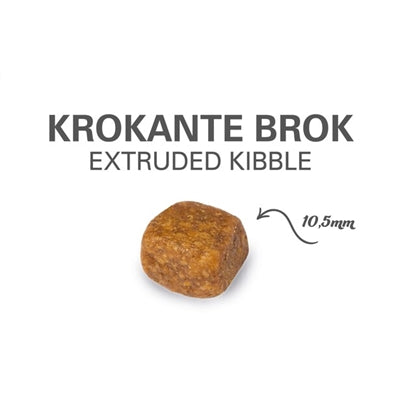 Samenstelling: Gedehydreerd gevogelte, maïs, dierlijk vet (gevogelte, rund), maïsgluten, rijst, eipoeder, plantaardige voedingsvezels, bietenpulp, cellulose, hydrolysaat van kippenlever, plantaardige olie, hydrolysaat van gist (bron van Manno-Oligo- Sachariden), zalmolie (0.5%), L-carnitine, lecithine, Fructo-Oligo-Sacchariden (FOS), glucosamine & chondroïtine (750 mg/kg)