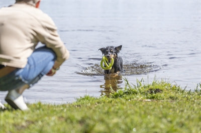 Het Trixie Aqua Toy Trekspeeltje TPR Lime 17 cm is hondenspeelgoed van thermoplastisch rubber (TPR), dat blijft drijven op water en voorzien is van een opvallende kleur voor veel zwem- en speelplezier. Is jouw hond gek op zwemmen en apporteren in het water? Dan is dit het perfecte speelgoed voor jullie. Dit speeltje is gemaakt van TPR (thermoplastisch rubber), dat rechtop blijft drijven op het wateroppervlak. Hierdoor is het speeltje gemakkelijk te vinden! Door de vorm kan de hond het speelgoed goed vastpakken om er mee terug te zwemmen en de kleur zorgt dat hij goed zichtbaar is op het water.
