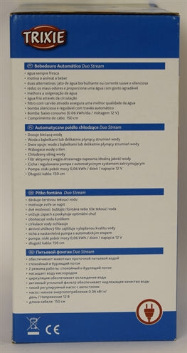 De Trixie Drinkfontein Duo Stream zorgt voor een constante aanvoer van vers en zuurstofrijk water voor jouw hond of kat. Dankzij de twee instellingen kies je zelf tussen een bruisende waterstroom of een zachte straal, afhankelijk van wat je dier prettig vindt. De watercirculatie draagt bij aan natuurlijke koeling en stimuleert huisdieren om meer te drinken. Het actieve koolfilter verbetert de waterkwaliteit door smaakjes en onzuiverheden te verminderen. De pomp is voorzien van een auto-stopfunctie voor extra gebruiksgemak. De drinkfontein is gemaakt van kunststof en werkt energiezuinig. Reservefilters zijn los verkrijgbaar.