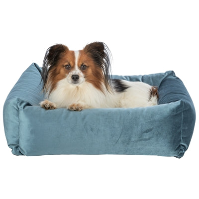 De Trixie Hondenmand Malia Be Eco Hoekig Blauwgrijs Gerecycled 65X55 cm is een duurzaam hondenbed van zacht, gerecycled materiaal met chique velourslook.