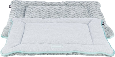 De Trixie Junior Ligmat Lichtgrijs/Groen 70X50 cm is een comfortabele, dubbelzijdige ligmat van zacht fleece, ideaal voor pups, kleinere honden of katten. Jouw hond droomt heerlijk weg op deze fijne mat van Trixie! Deze ligmat voor de hond of kat is gemaakt van heerlijke zachte stof, met één kant van pluche en één kant van sweatstof. Stoer en schattig in één, net als de kleurstelling! De mat is gevoerd met polyestervlies vulling voor meer comfort. Wasbaar met de hand voor een langere levensduur.