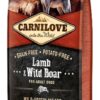 Gebruiksaanwijzing: Kan droog worden gegeven of bevochtigd met lauw water. De dagelijkse hoeveelheid hangt af van leeftijd, grootte, prestaties en omgeving. De aanbevolen dagelijkse hoeveelheid staat vermeld in een voedingstabel. Als u het voer voor de eerste keer geeft, geef dan kleinere hoeveelheden van Carnilove, meng het met het vorige voer en verhoog geleidelijk de hoeveelheid Carnilove in het voer. Zorg dat er altijd water klaar staat voor uw hond. Uiterste gebruiksdatum staat vermeld op de verpakking. Koel en droog bewaren.