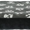 Het Trixie Kussen Jimmy Ovaal Zwart Met Pootprint 115 x 72 cm is een plat hondenkussen van zacht pluche met polyestervlies vulling, ideaal om als ligmat of in kunststof hondenmanden te gebruiken. Door de geringe dikte is dit kussen voor vele toepassingen te gebruiken. Kussen Jimmy is zeer geschikt om als opzichzelfstaande ligmat te dienen, maar ook ideaal om te gebruiken voor wat extra comfort in kunststof hondenmanden, zoals de Sleeper hondenmand. Het kussen is bekleed met polyester en heerlijk zacht pluche en eenvoudig af te nemen. Het kussen is wasbaar, de voering met de hand, de bekleding op 40 graden in de wasmachine.
