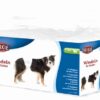 Deze hondenluiers van Trixie zijn ideaal voor eenmalig gebruik bij reuen. De luiers gemaakt in de vorm van een buikband en laten de achterzijde van de hond dus vrij. Ze zijn sterk absorberend en gaan lekken tegen. Door de elastische band en de klittenbandsluitingen zijn ze goed vast te maken. De luiers zijn wegwerpartikelen en na gebruik dus simpelweg te vervangen door een nieuwe.