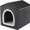 Trixie Hondenmand / Kattenmand Huis Livia Grijs / Wit 38 x 41 x 44 cm is een comfortabel kattenhuis of hondenhuis van polyester, bekleed met pluche en voorzien van een slipvaste onderkant. Verstoppen en heerlijk ongestoord slapen, jouw hond of kat kan het allebei in deze leuke Livia schuilplaats voor de hond of de kant. Dit huis is gemaakt van polyester in velourslook, met een ligplateau bekleed met zacht pluche. Ook de ingang is voorzien van een randje pluche. Het huis heeft een puntdak en is inklapbaar, om het ruimtebesparend op te bergen. Door de slipvaste onderkant kan jouw dier het huisje eenvoudig in- en uitstappen zonder dat het verschuift.