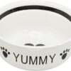 De Trixie Voerbak Drinkbak Keramiek Wit / Zwart van 13 cm 250 ml 4 stuks is een keramische voerbak of drinkbak voor de hond of kat, eenvoudig te reinigen en met een leuke opdruk. De bak is glad afgewerkt en daardoor te gebruiken voor zowel natvoer, droogvoer als water. Ook zorgt de gladde afwerking voor gemakkelijke reiniging. Deze bak is ook geschikt als vervangende bak voor bowl sets/voerstandaards.