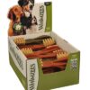 De tandenborstels van Whimzees zijn snacks waar je hond ongetwijfeld achteraan gaat. Deze vegetarische kauwsnacks zijn gemaakt van natuurlijke ingrediënten die helpen bij de spijsvertering en het polijsten van de tanden. Daarnaast zorgen de vezels voor een sterker product. De unieke structuur stimuleert de bloedsomloop in het tandvlees en helpt een slechte adem te voorkomen. Jouw hond heeft langdurig kauwplezier door de speciale samenstelling en het productieproces. De groeven helpen tandplak en tandsteen te verwijderen tijdens het kauwen.