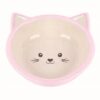 Deze drinkbak voor de kat of kitten heeft een grappig design in de vorm van een kattengezichtje. De stevige bak van keramiek heeft een gestipte roze buitenkant en een crèmekleurige binnenkant.