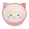 Deze drinkbak voor de kat of kitten heeft een grappig design in de vorm van een kattengezichtje. De stevige bak van keramiek is crèmekleurig met roze rand.