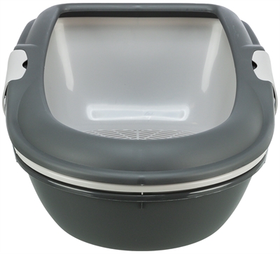 De Trixie Berto Kattenbak Met Scheidingssysteem Grijs/Patselblauw/Graniet 39X22X59 cm is een open kattenbak met een hygiënisch scheidingssysteem ter het eenvoudig verschonen van de kattenbak. De kattenbak bestaat uit verschillende lagen, namelijk twee bakken en een zeef. Door het grit uit de bovenste bak door de zeef in het midden heen in de onderste bak te gooien, kun je jouw grit zo eenvoudig hergebruiken zonder de klonten en ontlasting die door de zeef uitgefilterd zijn. Door de Easy Click-sluitingen is het zeer eenvoudig de bakken van elkaar los te maken en zijn deze ook gemakkelijk weer op elkaar te klikken. De opstaande rand zorgt bovendien dat er minder grit uit de kattenbak gegraven wordt.