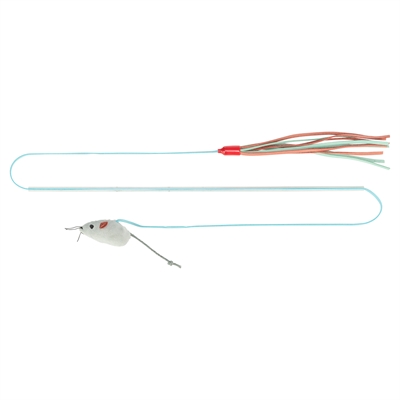 Kattenhengel met twee verschillende speeltjes aan het einde, aan de ene kant een pluche speeltje en aan de andere kant fleece reepjes. Trek de aandacht van jouw kat door het touw voor zijn neus heen en weer te bewegen en te schudden. Maak onverwachte bewegingen om het spel nog leuker voor de kat te maken.