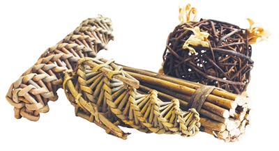 – Bestaat uit een spiraal, maiskolf, bal en wilgensticks, allen van wilg gemaakt