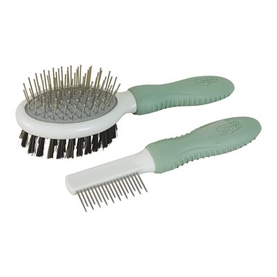 De Zolux Borstelset voor knaagdieren is ideaal voor het verzorgen van de vacht van jouw kleine huisdier. Deze set bestaat uit een dubbelzijdige borstel en een tweezijdige kam, ontworpen om het verzorgen gemakkelijk en effectief te maken. De stalen pinnen van de borstel verwijderen dode haren, klitten en vuil, terwijl de nylon zijde zorgt voor een zachte, gladde finish. De dubbele kam helpt om de vacht op een milde manier te ontwarren en zorgt voor een glanzend resultaat.